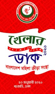 বাংলাদেশ মহিলা ক্রীড়া সংস্থার ব্যবস্থাপনায় আগামী ২৩ জানুয়ারি ২০২৬ইং, শুক্রবার সকাল ৯টা থেকে দুপুর ১২:৩০ মিনিট পর্যন্ত “খেলার ডাক–২০২৬” শীর্ষক একটি উৎসবমুখর আয়োজন ধানমন্ডি রিয়া গোপ মহিলা ক্রীড়া কমপ্লেক্সে অনুষ্ঠিত হবে।